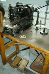 | The factory contains a few examples of the old foot-powered sewing machines. Below is a dedicated machine purely to produce the lace-hole for corsets. Very specialised! |