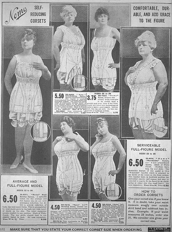 The 'stout woman' was one of the corsetiere's favorite clients! After all, a thin women can be sold a corset, however, the change to her figure will not be very apparent (outside the world of tight-lacing). With the avoirdupois of the stout woman, anything is possible!