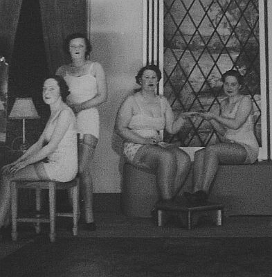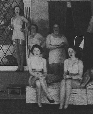 You never know where you'll meet these stout women! Spirella (1930) envisaged a stately home with a dozen society female guests who, unaccountably, have forgotten to put on their clothes.
