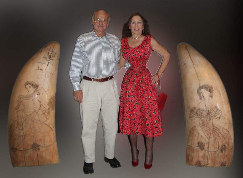 NOTE: As a matter of course, all the images that we display are unmodified. Occasionally, as above, we blur out the background (in this case Bob's pick-up in their garage) and add in two of Bob and Cathie's beautiful (and appropriate) pieces of scrimshaw. One thing that certainly needs no computer enhancement is Cathie's amazing waist!
