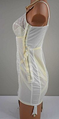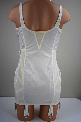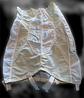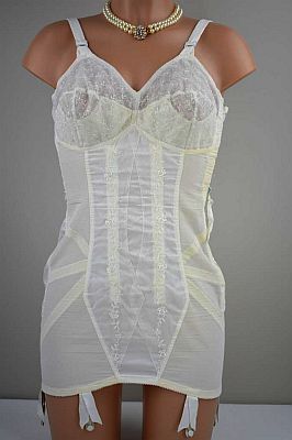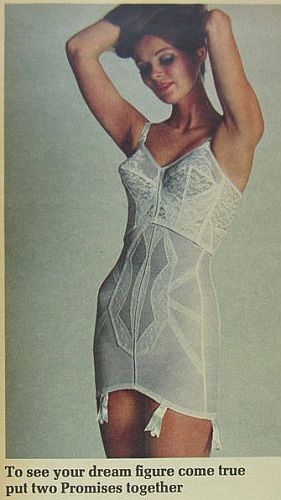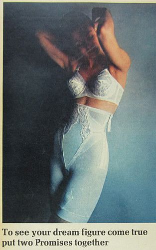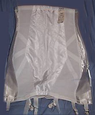 As is so often the case, an 'empty' girdle really does not show itself to best effect; best leave that to the advertisements. Cathie's girdle (left) is a later Poirette than the example on the right or the one that Amy wears. This is obvious, as it is in the case of the M&S girdles from the substitution of nylon for satin and the reduced denier of the elastic sections. |